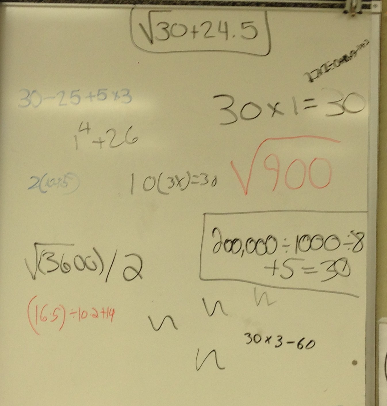 Lots of discussions ensued about order of operations, square roots, rounding, parentheses, etc. Overall, the activity lasted 30 minutes, which was about 29 more minutes of math than we did yesterday.