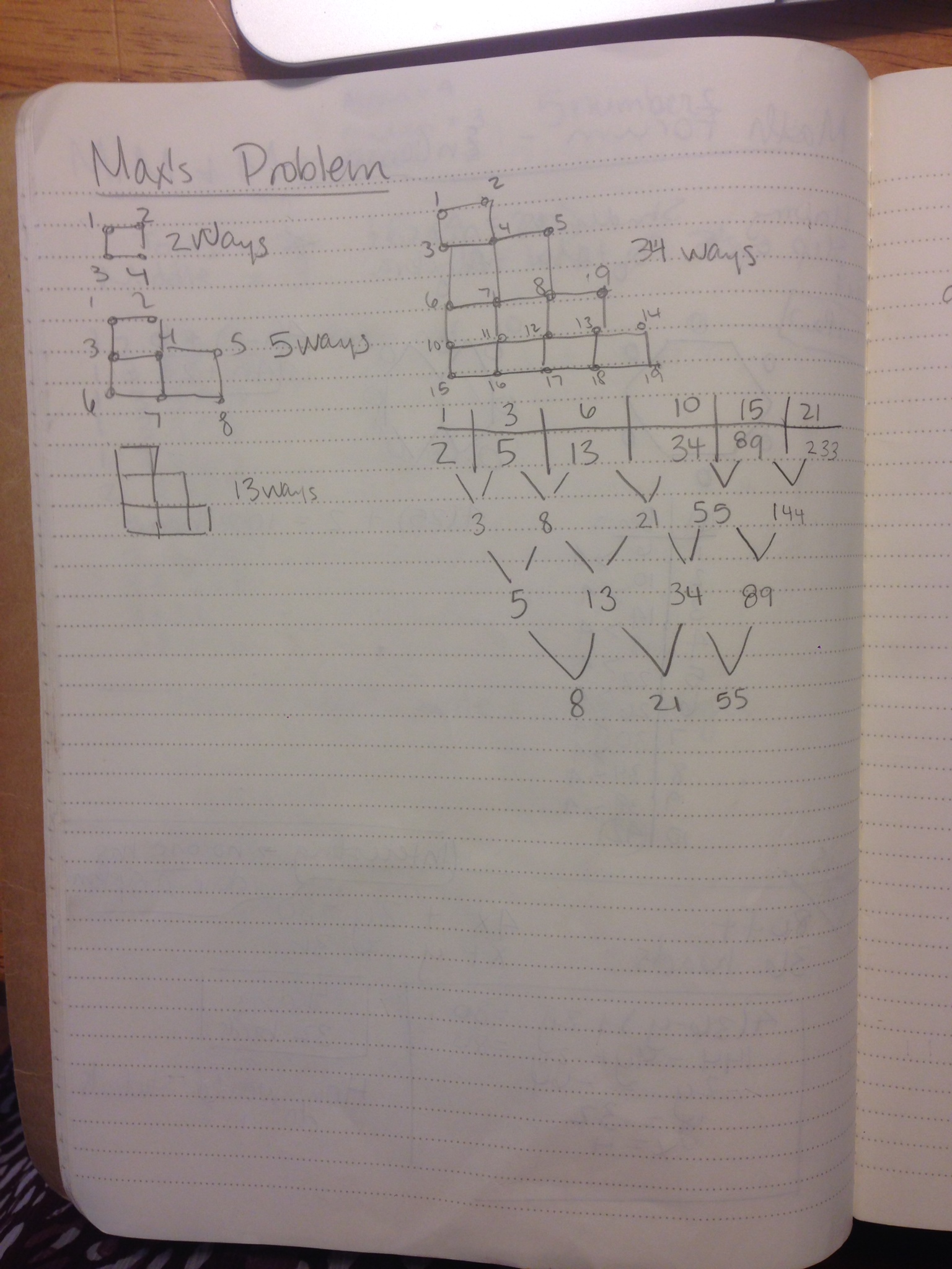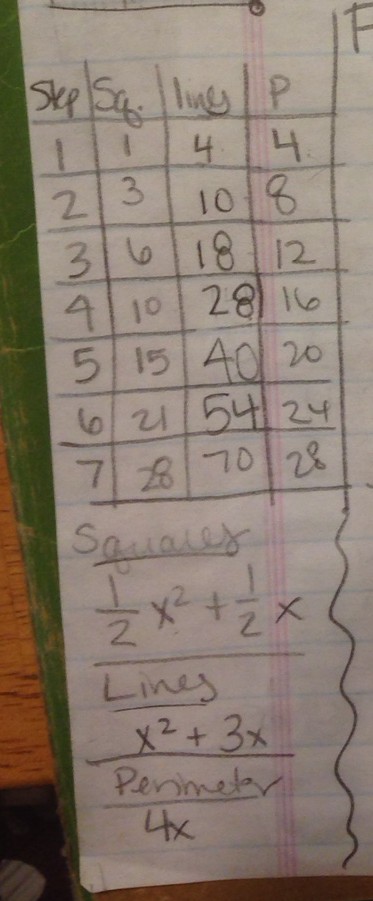 Simplifying the grid and turning it into a pattern expanded the questions that I wanted to ask. For instance, how many line segments (or streets) in Ursala’s case) are used in step n?