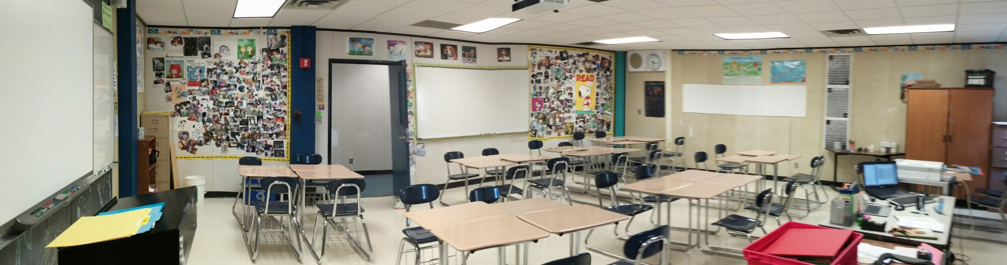 I put my desks in groups of 4 today and took a neat panoramic picture with my new phone. I’m excited to see if it’s a successful, productive room arrangement.
