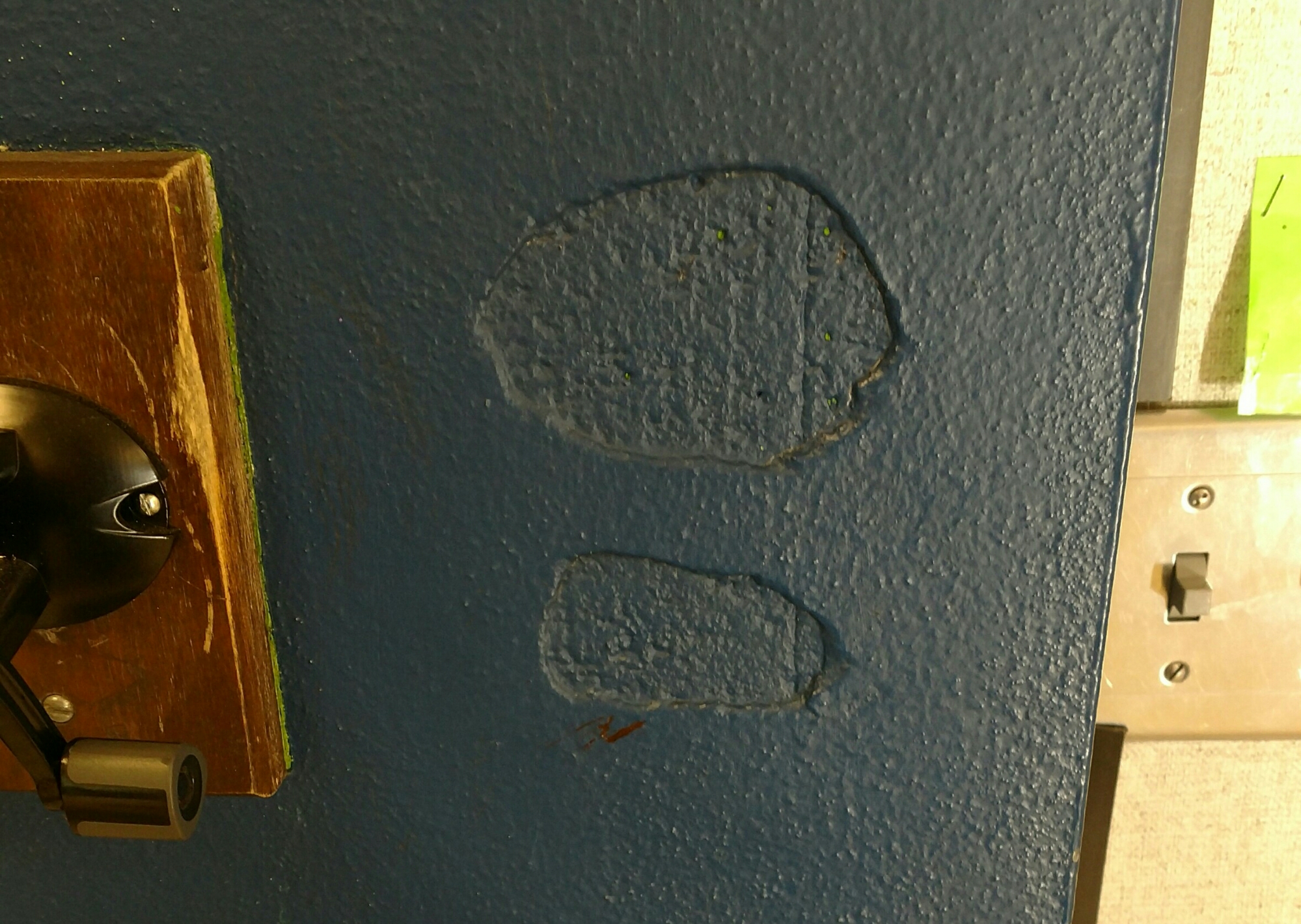 A gaping gash in the blue faux concrete. Many of them have never noticed it before but now their eyes are fixed on it.