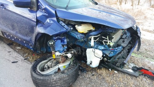 Two weeks ago, I was in a car accident on the way to school on a clear, dry, sunny Monday morning. I was heading north on a county highway when a car pulled out from my right to head south. My SUV slammed into him at about 50 miles per hour deploying all of my airbags and sending my car into oncoming traffic. When my car came to a stop on the opposite side of the road, I was relieved that my Sync system was dialing 911 on my behalf. Who knows where my cell phone was at that point. Fifteen minutes later, a police officer arrived. The driver of the other car was issued a citation for distracted driving and my mangled Escape was hauled away.